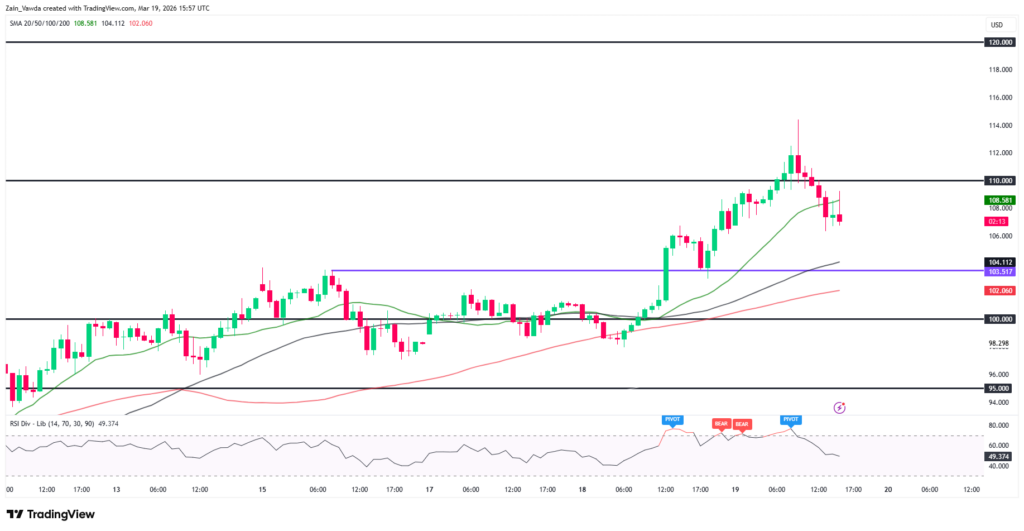 - Scenariul Bearish (Sub $95): Dacă eforturile diplomatice reușesc brusc, prețurile s-ar putea retrage. O scădere sub suportul de 97,65 dolari ar semnala stingerea „febrei geopolitice”. Eliberarea coordonată a rezervelor strategice (SPR) ar putea susține acest trend descendent.