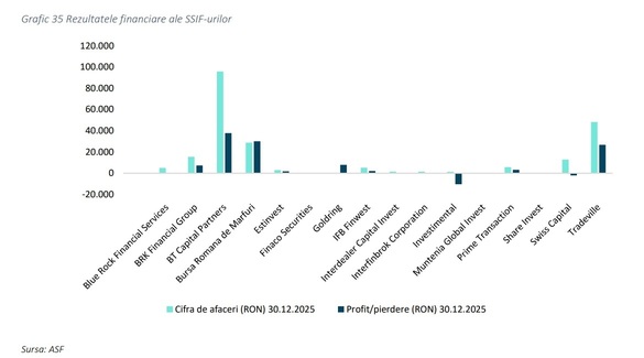Din cele 16 societăți de profil românești, 13 au reușit să raporteze profituri la finalul anului. Doar trei entități au înregistrat pierderi agregate, totalizând aproximativ 12,8 milioane de lei. Câștigurile au fost concentrate puternic la lideri de piață precum BT Capital Partners sau TradeVille. BT Capital Partners a asigurat singură aproape un sfert din întreaga activitate intermediată local. Jucătorii veniți din alte state europene dețin o cotă de piață de numai 5% în prezent. Brokerii locali demonstrează o reziliență deosebită și o cunoaștere profundă a psihologiei investitorului român, conform Profit.ro.